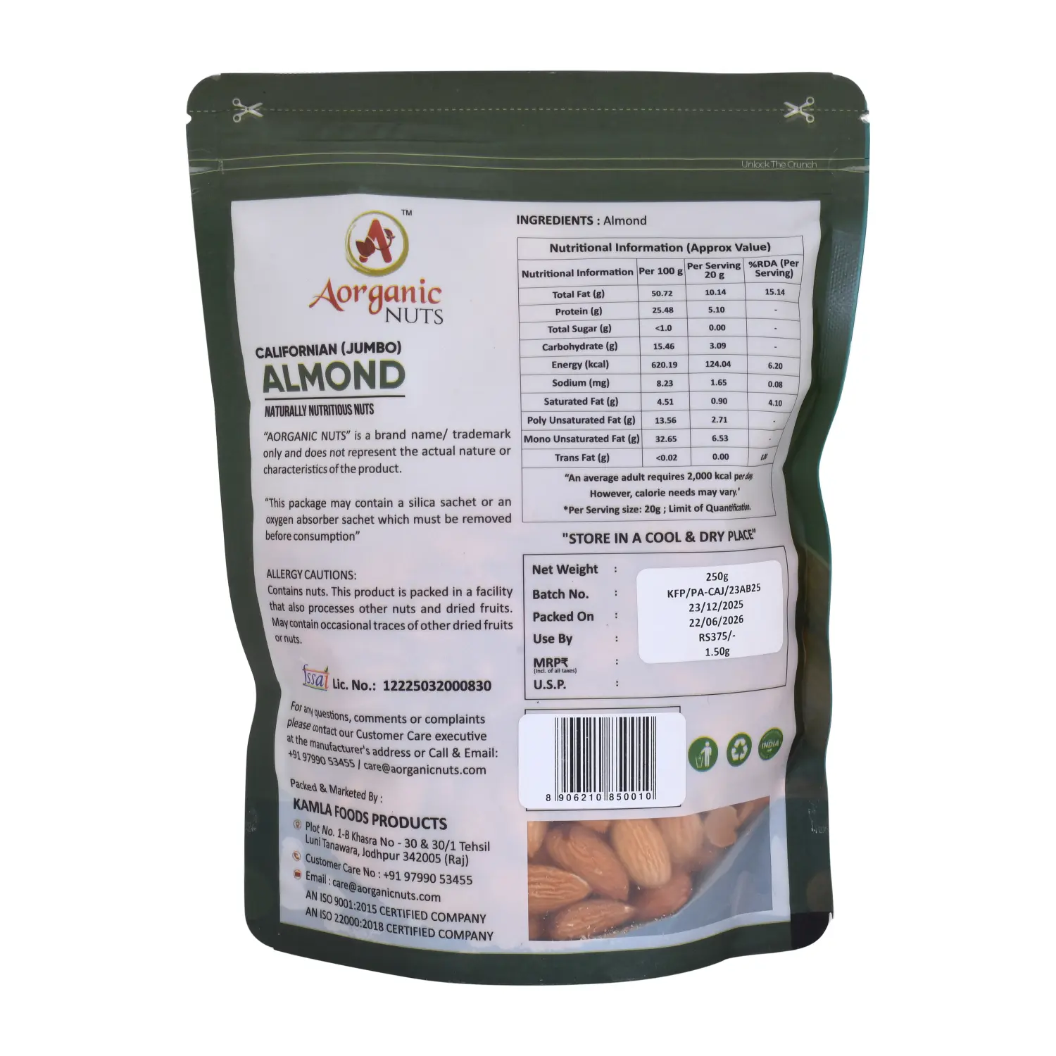 - Damage/Missing Items: Please inspect your package upon arrival. If the external packaging is severely damaged, do not accept the delivery and contact us immediately at care@aorganicnuts.com.
