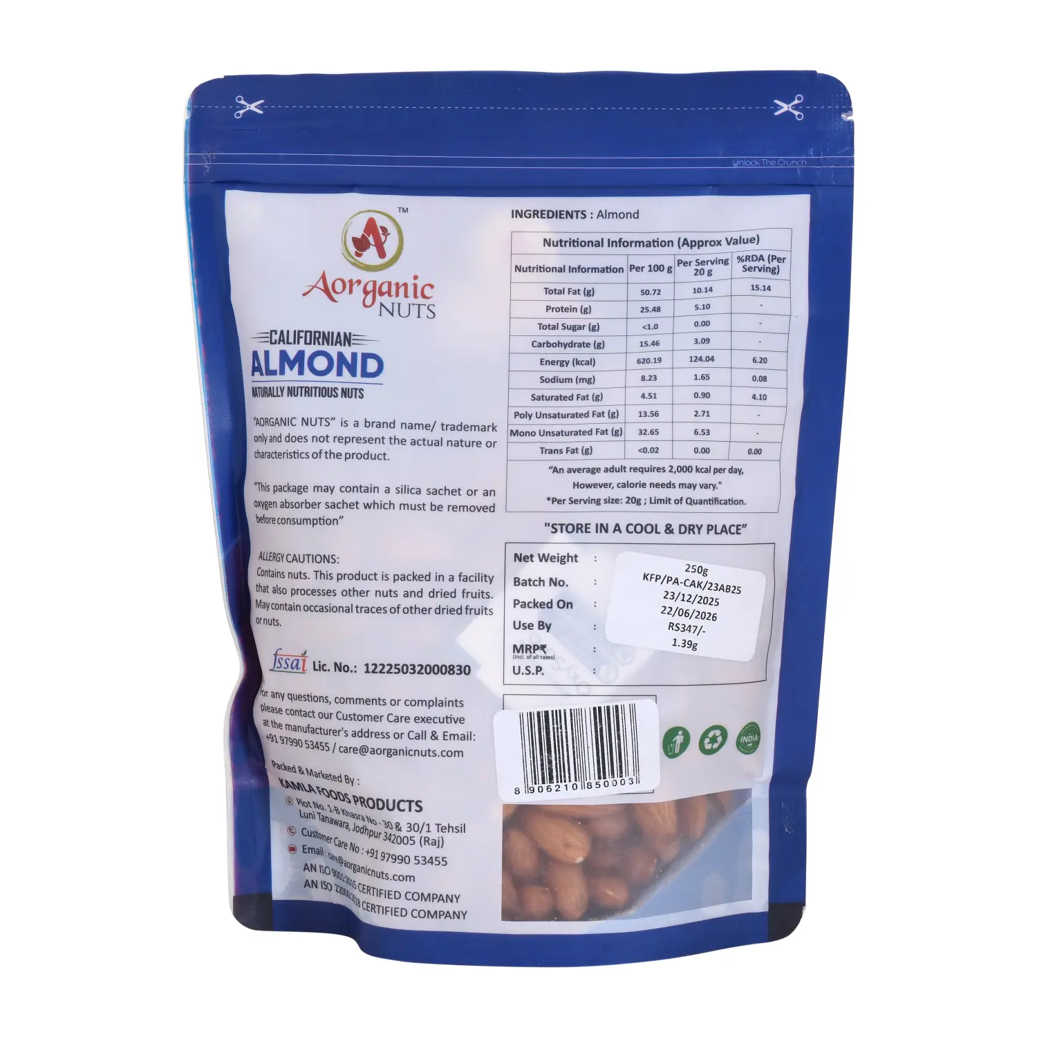 - Damage/Missing Items: Please inspect your package upon arrival. If the external packaging is severely damaged, do not accept the delivery and contact us immediately at care@aorganicnuts.com.