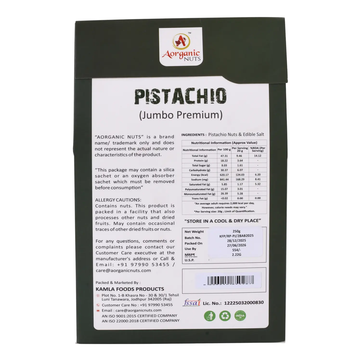 • Damage/Missing Items: Please inspect your package upon arrival. If the external packaging is severely damaged, do not accept the delivery and contact us immediately at care@aorganicnuts.com.